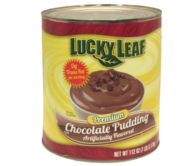 Lucky Leaf® Pudding is made with the finest ingredients. Add these smooth, delicious snacks and desserts to your menu. Single-serving cups and multi-serving cans are available in a wide variety of flavors, with many having 0g of trans fat per serving.